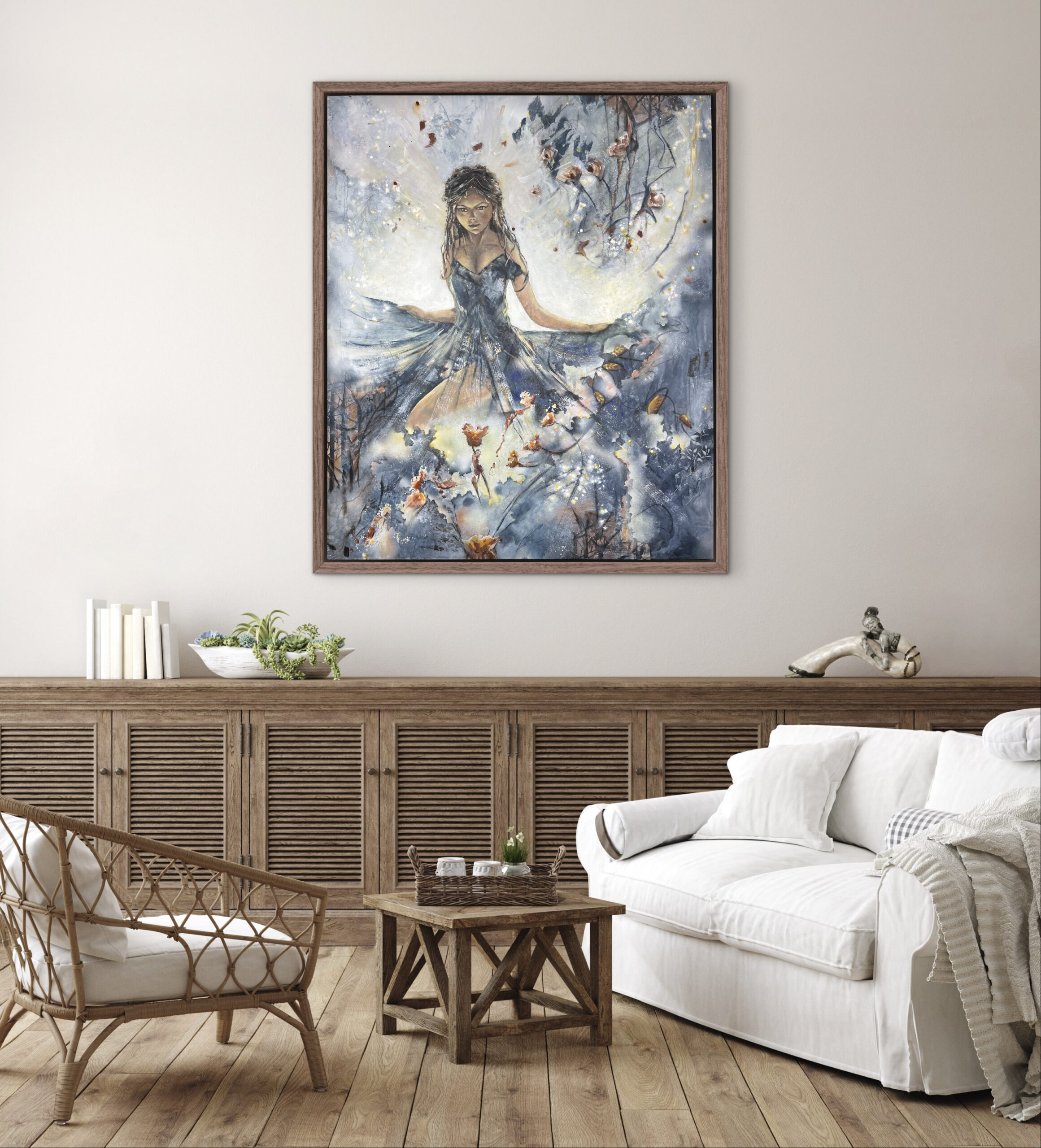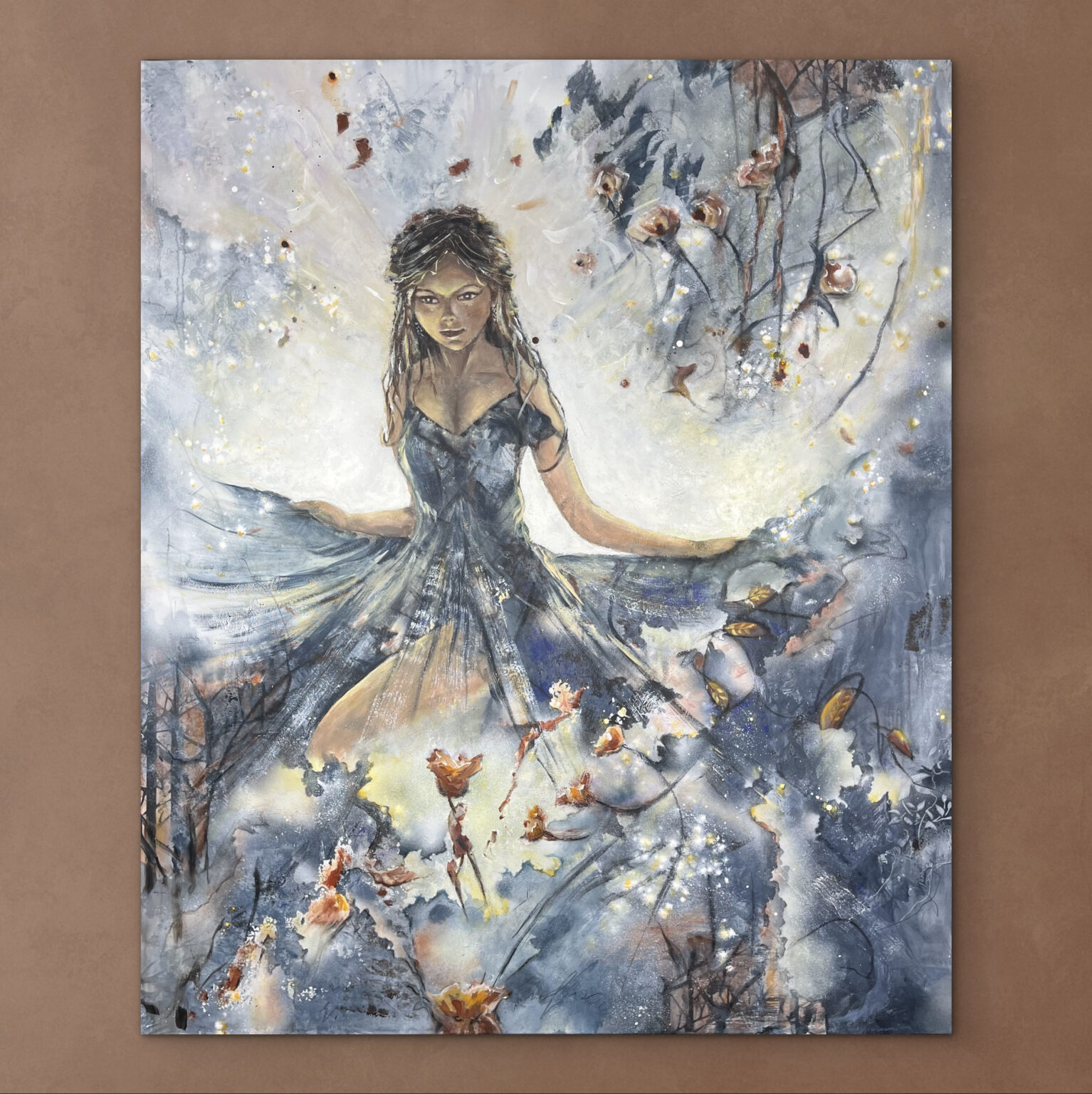 Dette maleri er skabt på et lærred med målene 100 cm x 120 cm x 4 cm og symboliserer livets udfoldelse, hvor lyset omgiver os og vækker vores sanser til live. Det er en påmindelse om at omfavne livet fuldt ud og være åbne over for de magiske øjeblikke, der opstår. Maleriet er fyldt med detaljer, dybde, lys og varme. Den dobbelte dybde tilføjer en ekstra dimension til værket, hvilket betyder, at det ikke behøver en ramme til at understøtte det. Kantene er smukt malet i hvidt, hvilket giver en elegant afslutning på værkets udtryk.